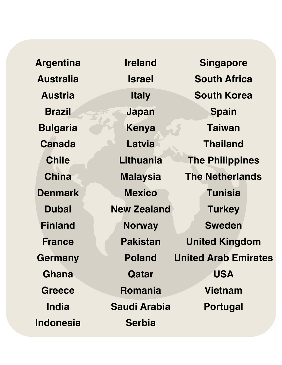 Som en del af vores 'Din kulturelle GPS' online kursus får du adgang til vores store database med 45+ landeprofiler. Vores landeprofiler giver værdifuld indsigt i kulturelle mønstre og giver et udgangspunkt for at forstå globale kolleger, medarbejdere og forretningspartnere. Mens disse profiler beskriver generelle tendenser i nationale kulturer, er de ikke tjeklister til at tyde individuel adfærd. Brug dem i stedet som et fundament for udforskning og dybere kulturel forståelse.